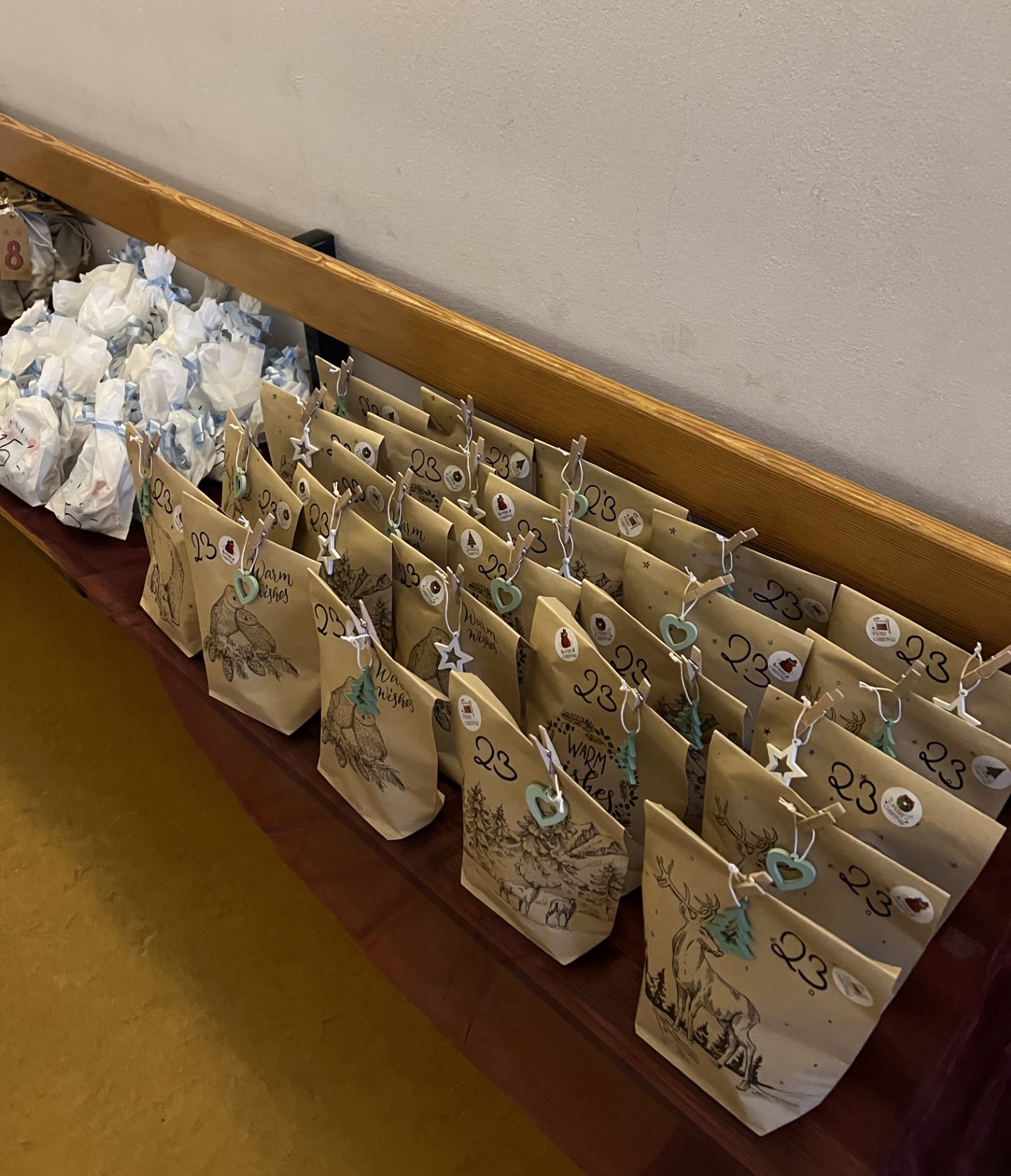 Bei einem schönen Adventsfrühstück haben sich die insgesamt 24 Frauen getroffen und die jeweils schön hergerichteten 24 Päckchen ausgetauscht, so dass am Ende jeder mit 24 verschiedenen Päckchen und Vorfreude auf das Öffnen wieder gegangen ist.